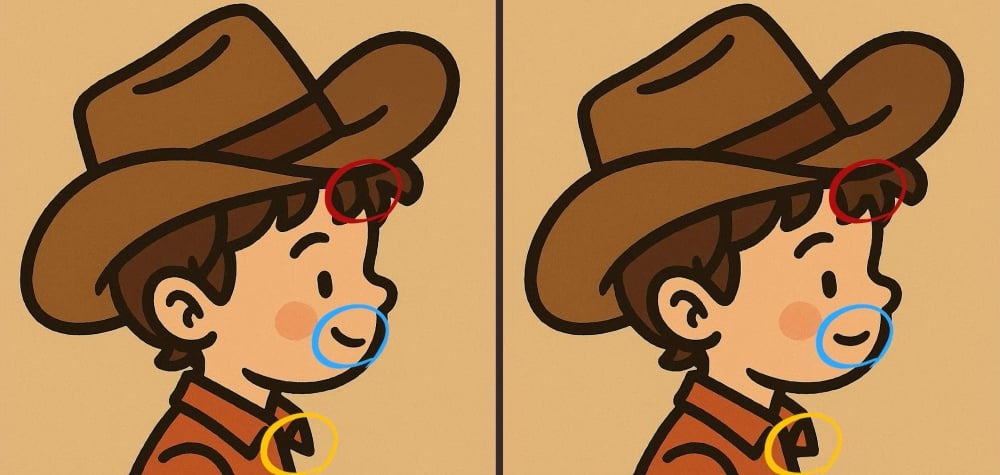 Allora, siete pronti per la prossima sfida? Osservate attentamente due immagini di un ragazzo che indossa un cappello da cowboy. A prima vista possono sembrare ugi, ma ci sono 3 piccole differenze. Pensate di riuscire a trovarle tutte in 51 secondi? Provate e mettete alla prova la vostra acutezza visiva!