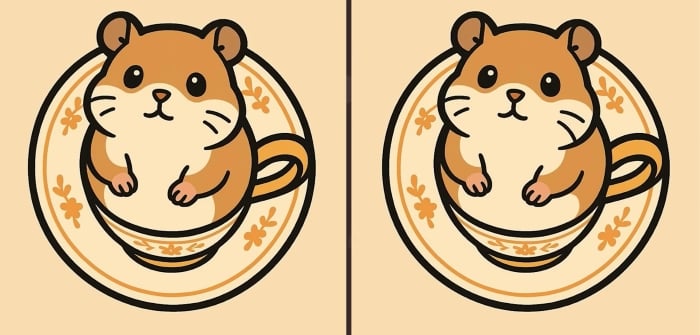 Allora, siete pronti per la prossima sfida? Osservate attentamente le due immagini di un criceto seduto in una tazza. A prima vista possono sembrare identiche, ma ci sono 3 piccole differenze. Pensate di riuscire a trovarle tutte in 51 secondi? Provate e mettete alla prova la vostra acutezza visiva!